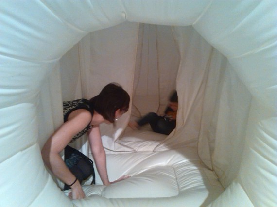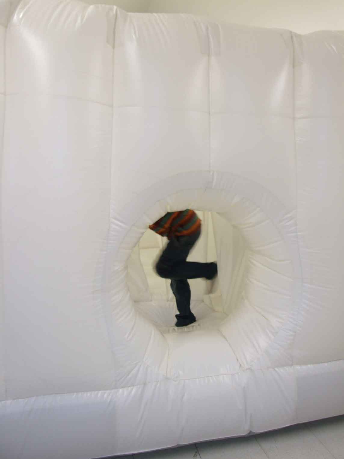 The lack of pressure in the inflatable augments the sense of instability as the spectator moves through the interior.